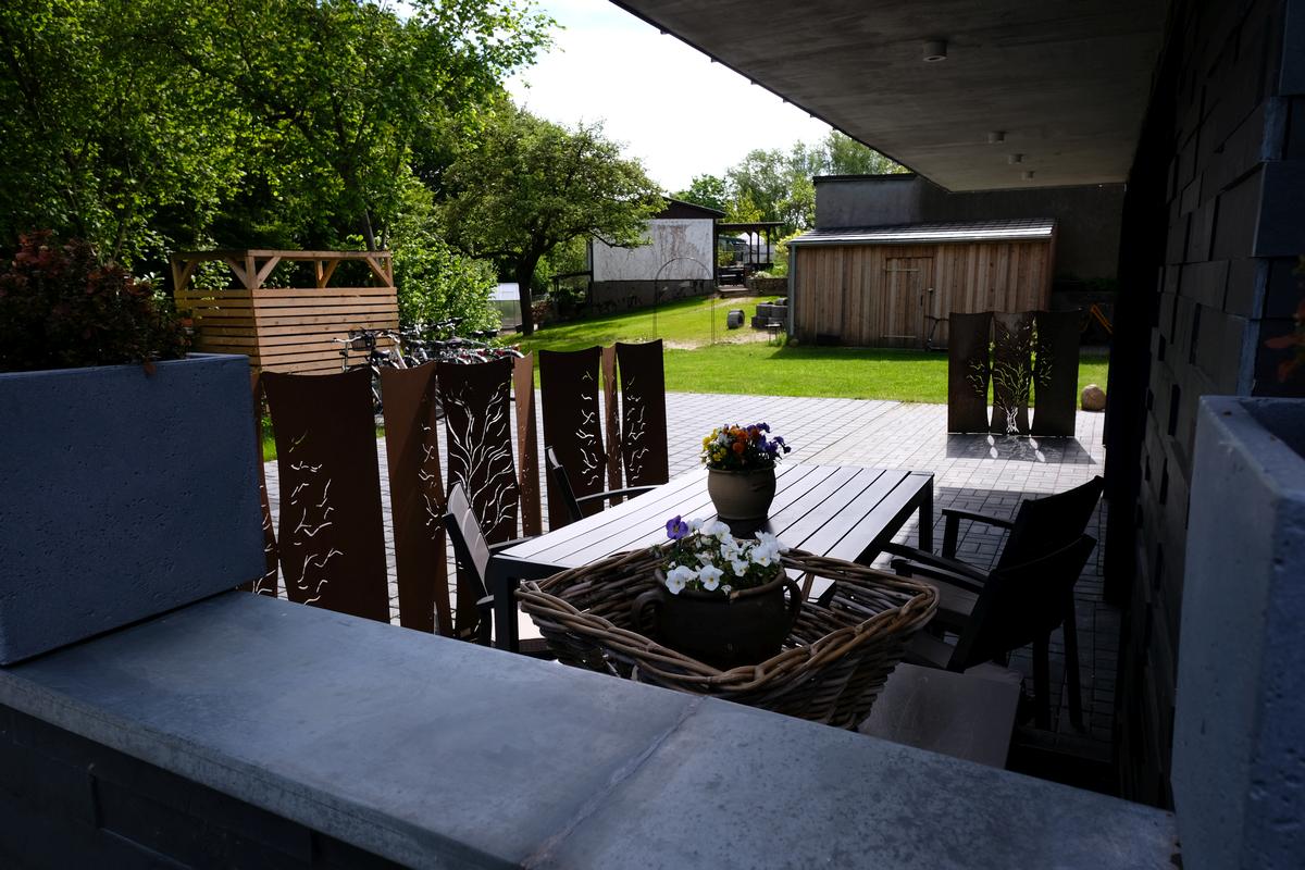 Ja, die Ferienwohnung verfügt über eine großzügige, überdachte Terrasse. Sie lädt mit einer gemütlichen Sitzgelegenheit und einer integrierten Grillfläche zum Entspannen und Genießen ein.